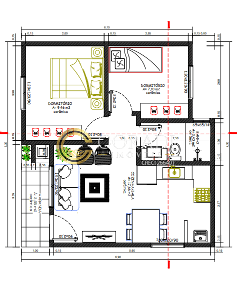 ✔️ 48,37 m² bem distribuídos